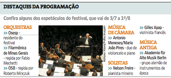 Ano passado, o último dos seis em que o evento esteve sob a direção artística de Minczuk, o orçamento estava na casa de R$ 5,3 milhões. Agora, o valor subiu para R$ 6,5 milhões.